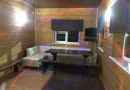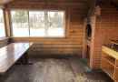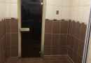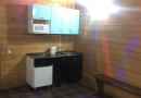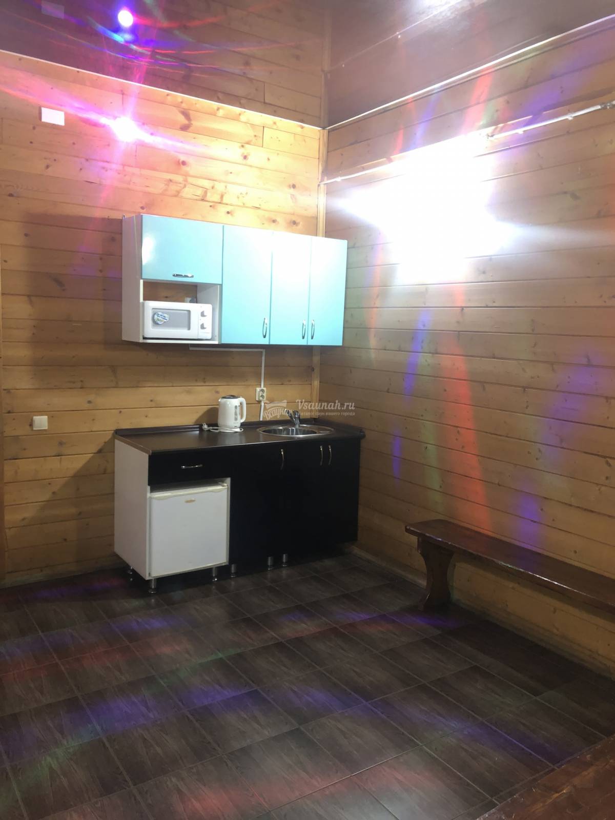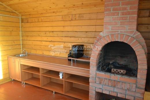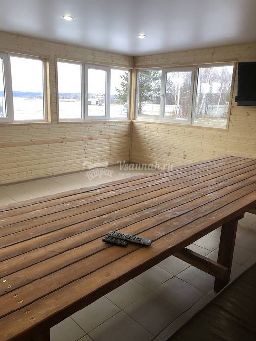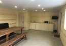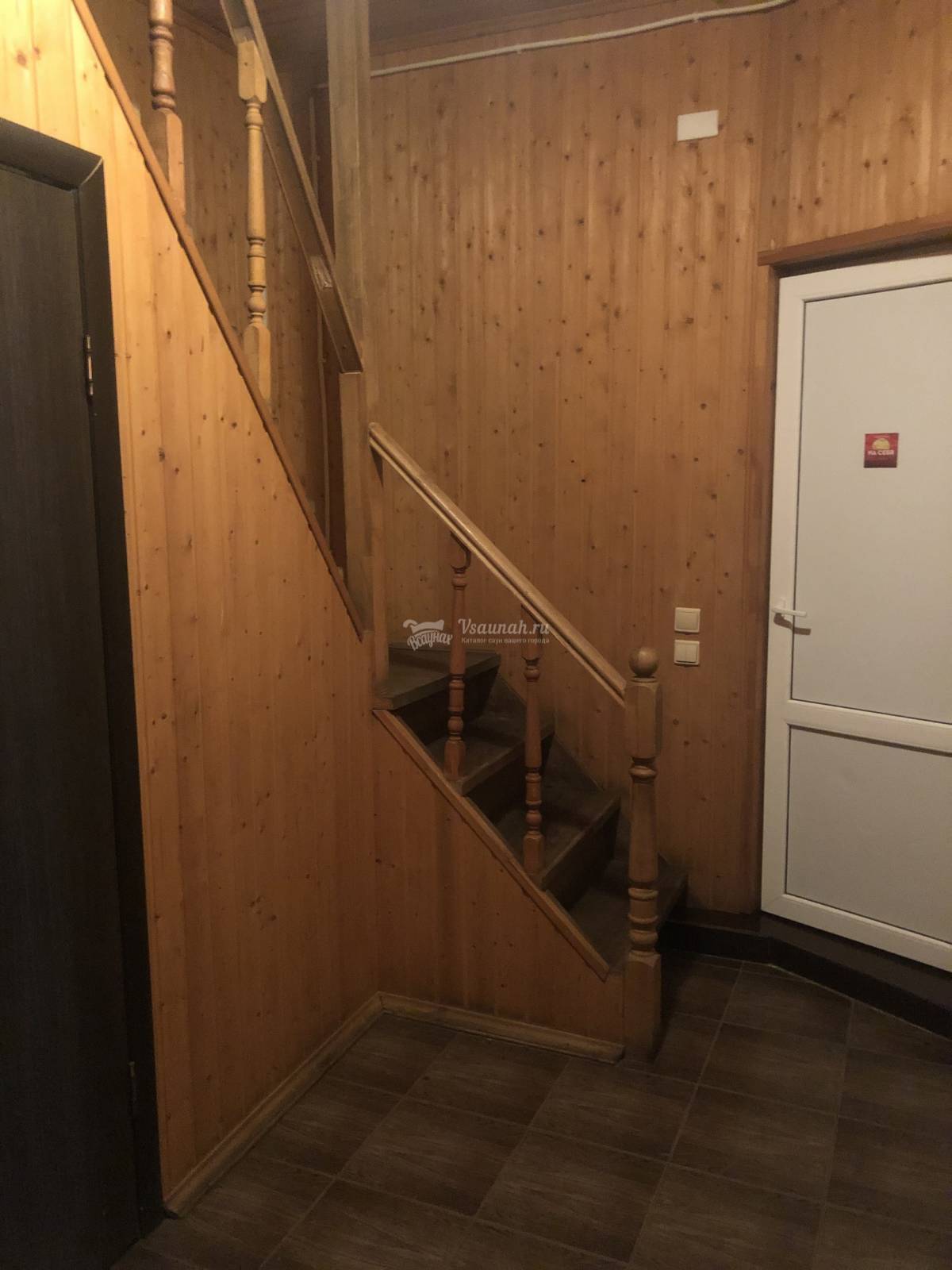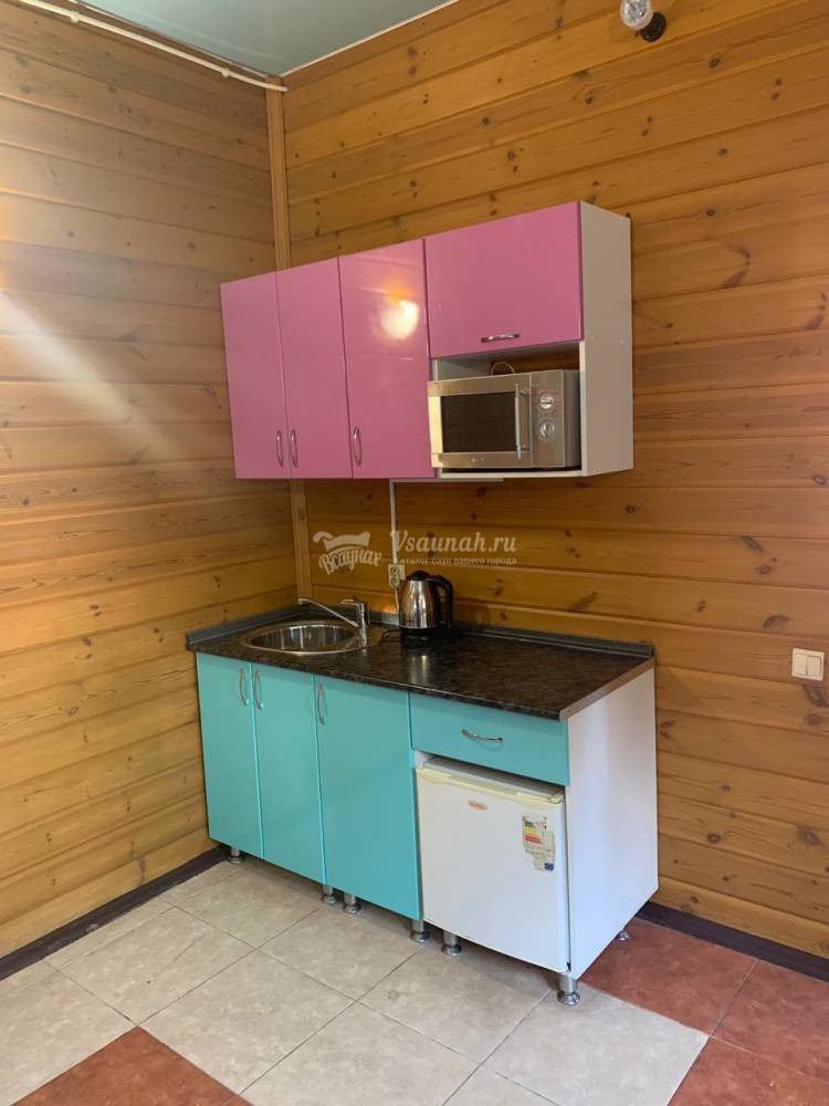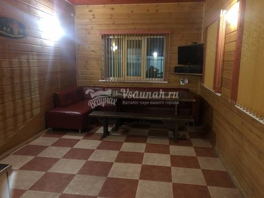 На первом этаже большой зал рассчитанный на 20 человек с телевизором и домашним кинотеатром, мини-кухней, парилкой на дровах, душ и сан узел.