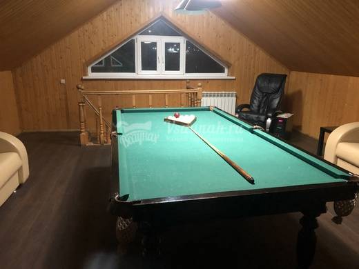 На втором этаже бильярд, массажное кресло, две комнаты отдыха. Дома рассчитаны на 10 спальных мест. У дома мангальная зона и навес.